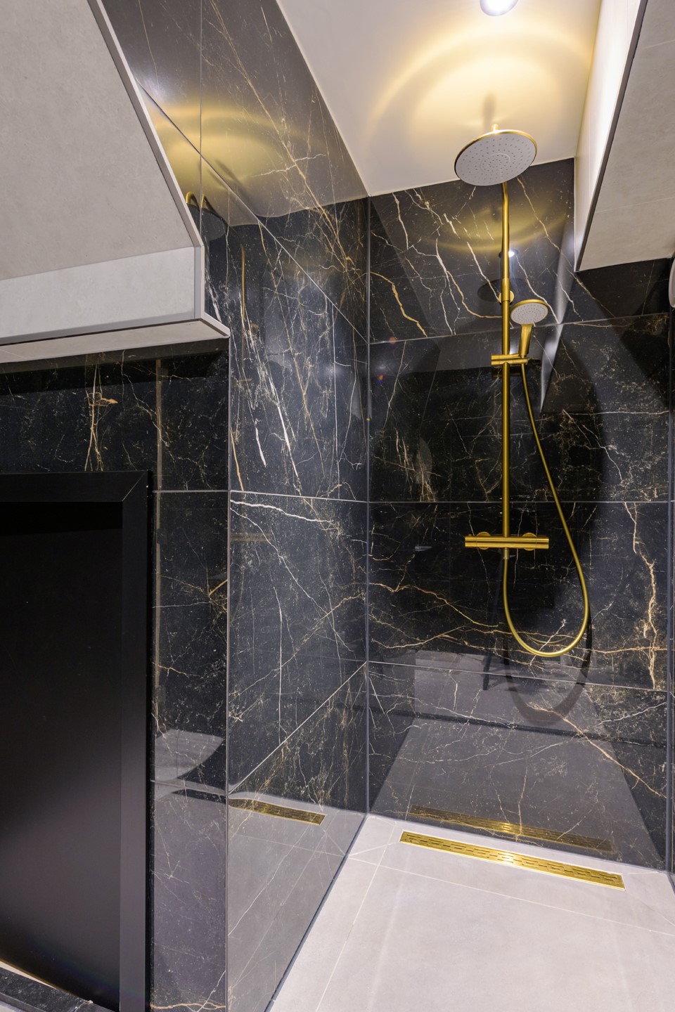Er zijn twee boven verdiepingen aanwezig. De eerste bovenverdieping is te bereiken middels een trap bij de voordeur. Ruime overloop met vaste kast met opstelling C.V. ketel (Remeha, 2022), vier slaapkamers en een badkamer. De hoofdslaapkamer beschikt over een badkamer en suite met een whirlpool ligbad, inloopdouche (sunshower), wastafelmeubel en zwevend toilet.