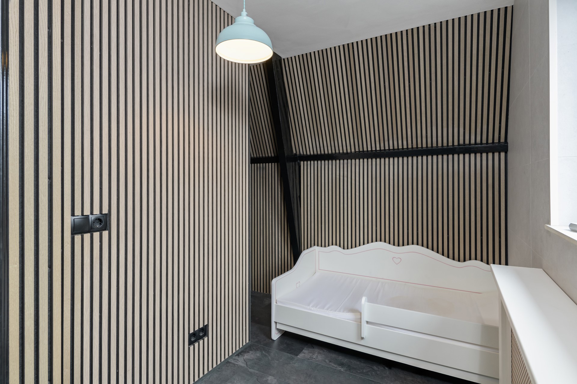 Vanuit de aanbouw is de tweede bovenverdieping bereikbaar. Hier bevindt zich een extra kamer met inbouwkast. Een perfecte ruimte om te gebruiken als rustige werkkamer.