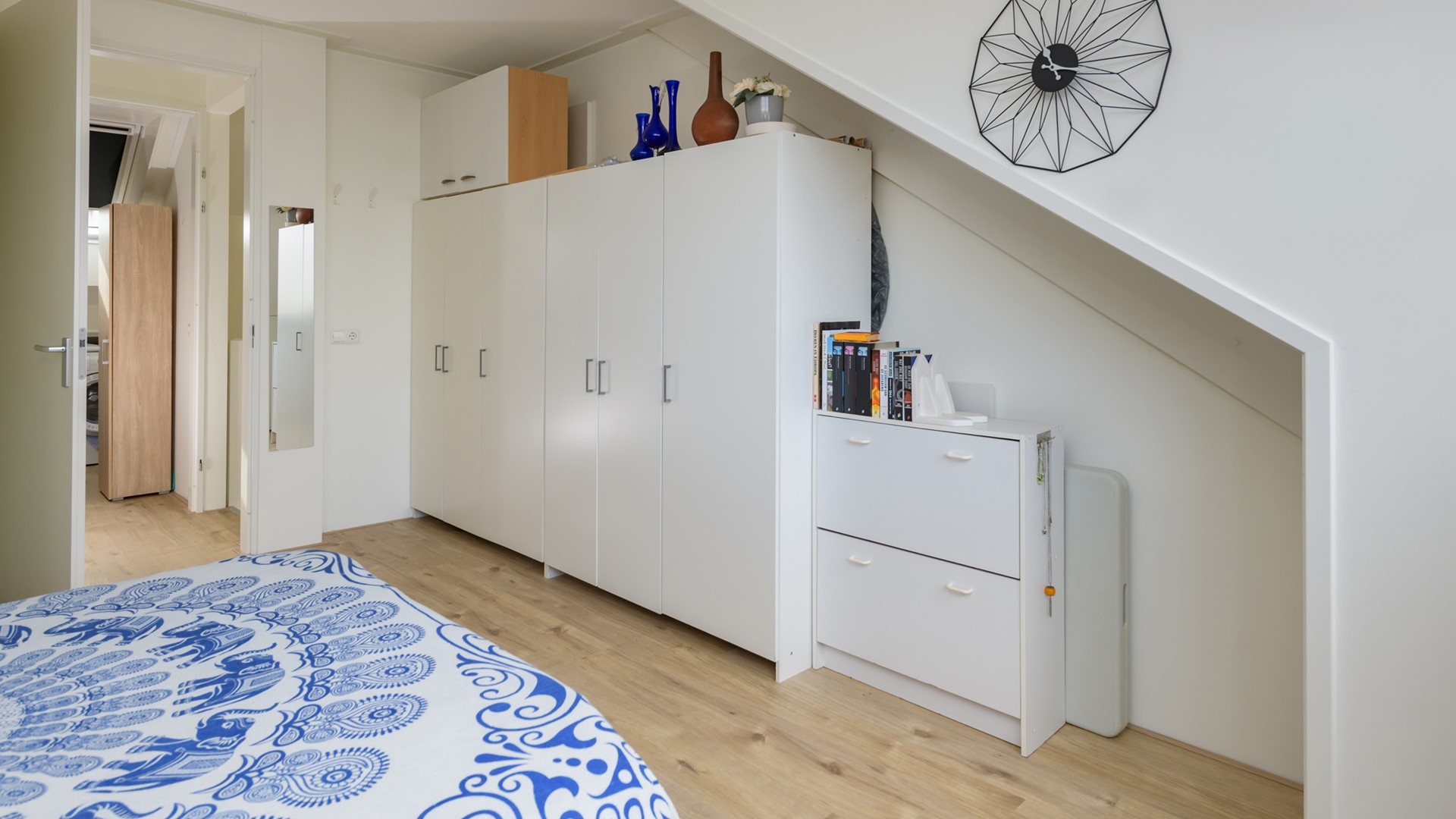 Overloop met dakraam welke ook ingericht kan worden als extra kamer. Hier bevindt zich tevens de aansluiting voor de was- en droogapparatuur. Ruime slaapkamer aan de achterzijde van de woning met dakkapel. De badkamer is voorzien van een inloopdouche, wastafelmeubel en toilet.