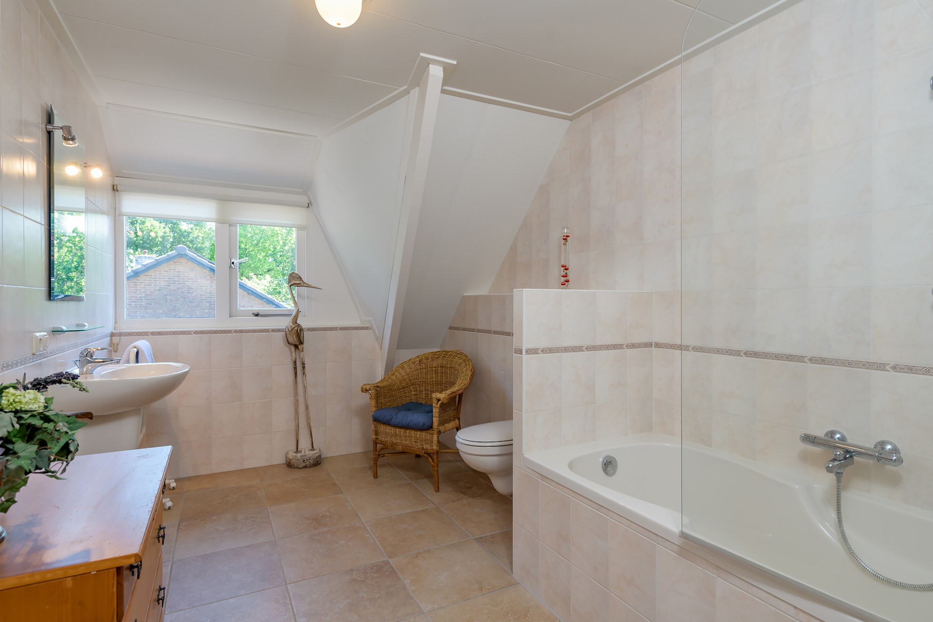 Overloop, drie slaapkamers, badkamer en een technische ruimte. Alle slaapkamers zijn ruim van formaat, twee met een dakraam en één met een dakkapel. Tevens is op de verdieping een tweede badkamer aanwezig met ligbad-/douchecombinatie, wastafel en een toilet. Er is vloerverwarming aanwezig. In de technische ruimte staan de Atag C.V ketel (2024) en de Stiebel Eltron warmtepomp opgesteld.