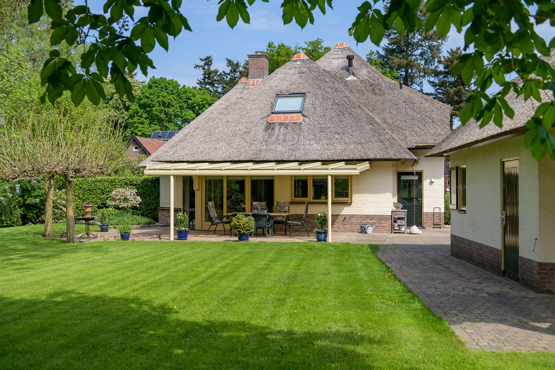 Uitstekend onderhouden rietgedekt landhuis met slaap- en badkamer op de begane grond, op een top locatie! Wat de locatie zo bijzonder maakt is de vrije ligging op een perceel van ruim 5.000 m2, maar te voet is de kern van Beekbergen te bereiken. Dus alle voorzieningen zijn binnen handbereik! De villa wordt omringd door een prachtig aangelegde tuin, een ruime oprit, aangebouwde veranda en een dubbele garage welke is gebouwd in de stijl van de villa. Achter de woning is een weiland aanwezig met twee paardenstallen, maar ook een perfecte wei voor schapen, geitjes of andere dieren. Het leuke is dat je vanuit de woonkamer en woonkeuken geniet van het uitzicht over je eigen weiland. De, in 2002 gebouwde woning is onder architectuur gebouwd, is volledig geïsoleerd, voorzien van dubbele beglazing en een hybride warmtepomp. Zodoende beschikt de woning over een energielabel A.