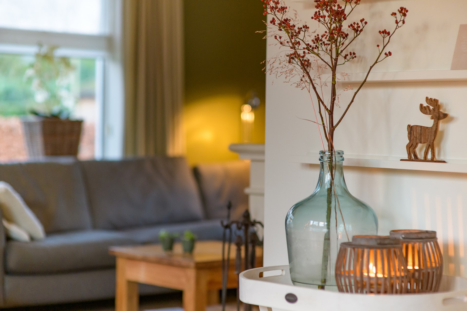 Entree/hal, meterkast, trapkast en toilet met fonteintje. Binnenkomst in de lichte woonkamer met openslaande deuren met toegang tot het terras. Het terras is gelegen op het westen waardoor je ’s middags en ’s avonds heerlijk van de zon kan genieten! Er is een knusse zithoek aanwezig met schouw met een open haard. Middels en suite deuren zijn de woonkamer en woonkeuken van elkaar gescheiden. De woonkeuken beschikt over een keukenblok in landelijke stijl, geplaatst in een hoekopstelling met diverse inbouwapparatuur waaronder een 5-pits gaskookplaat met afzuigkap, twee ovens, een vaatwasser, koelkast en magnetron. Vanaf de keuken is er een doorloop naar de bijkeuken en garage. In de bijkeuken is een vaste kastenwand aanwezig waarachter de aansluiting voor de was- en droogapparatuur is weggewerkt. Tevens heeft de bijkeuken een spoelbak en een rechtstreekse toegang tot de tuin. De garage is voorzien van een lichtkoepel en een kanteldeur met loopdeur.