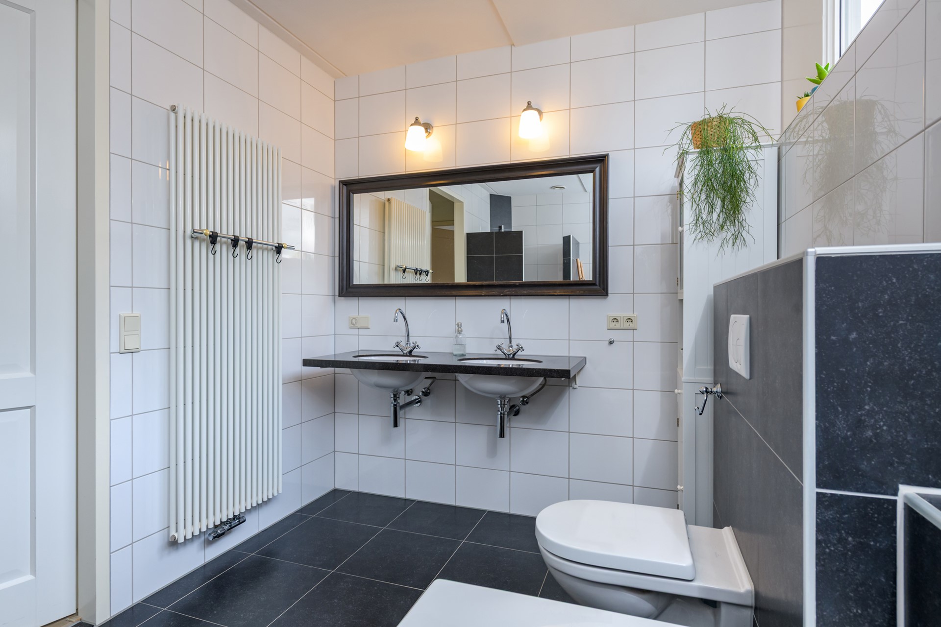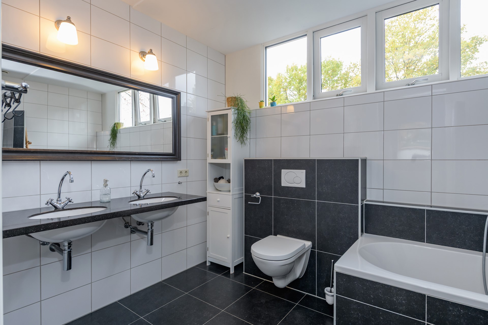 Ruime overloop met dakraam, drie ruime slaapkamers en een badkamer. De hoofdslaapkamer is zeer royaal te noemen en beschikt over een vaste kastenwand. De moderne badkamer is compleet uitgevoerd met een ligbad, dubbele wastafel, inloopdouche en een toilet.