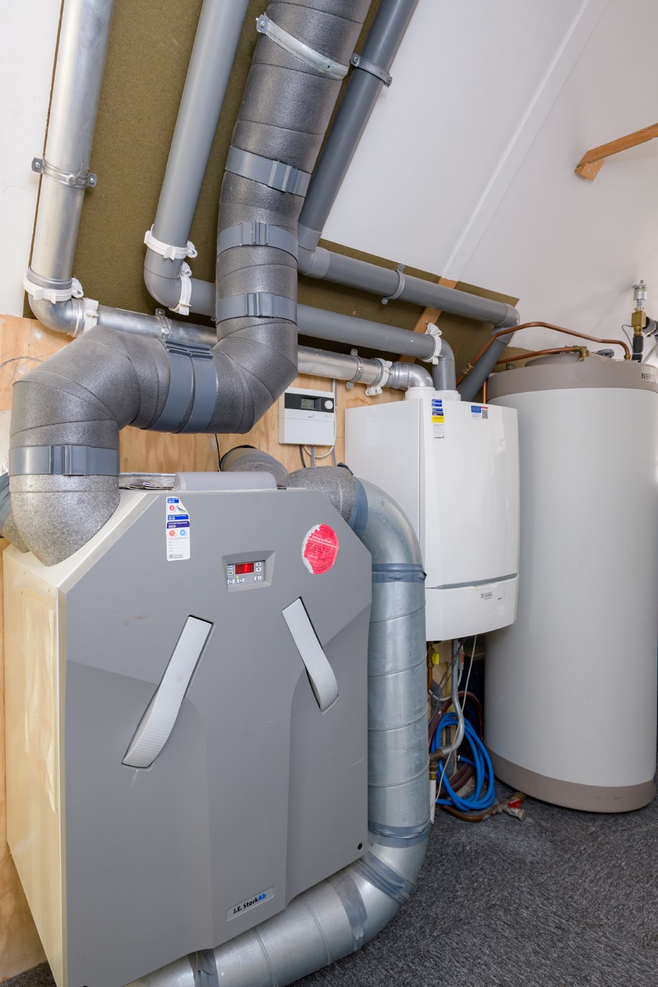 Grote voorzolder met opstelling C.V. ketel (Remeha, 2012), zonneboiler (Nefit, 2012) en WTW installatie. Daarnaast is er op zolder een vierde slaapkamer aanwezig. Ook zeer geschikt als werk-/studeerkamer.