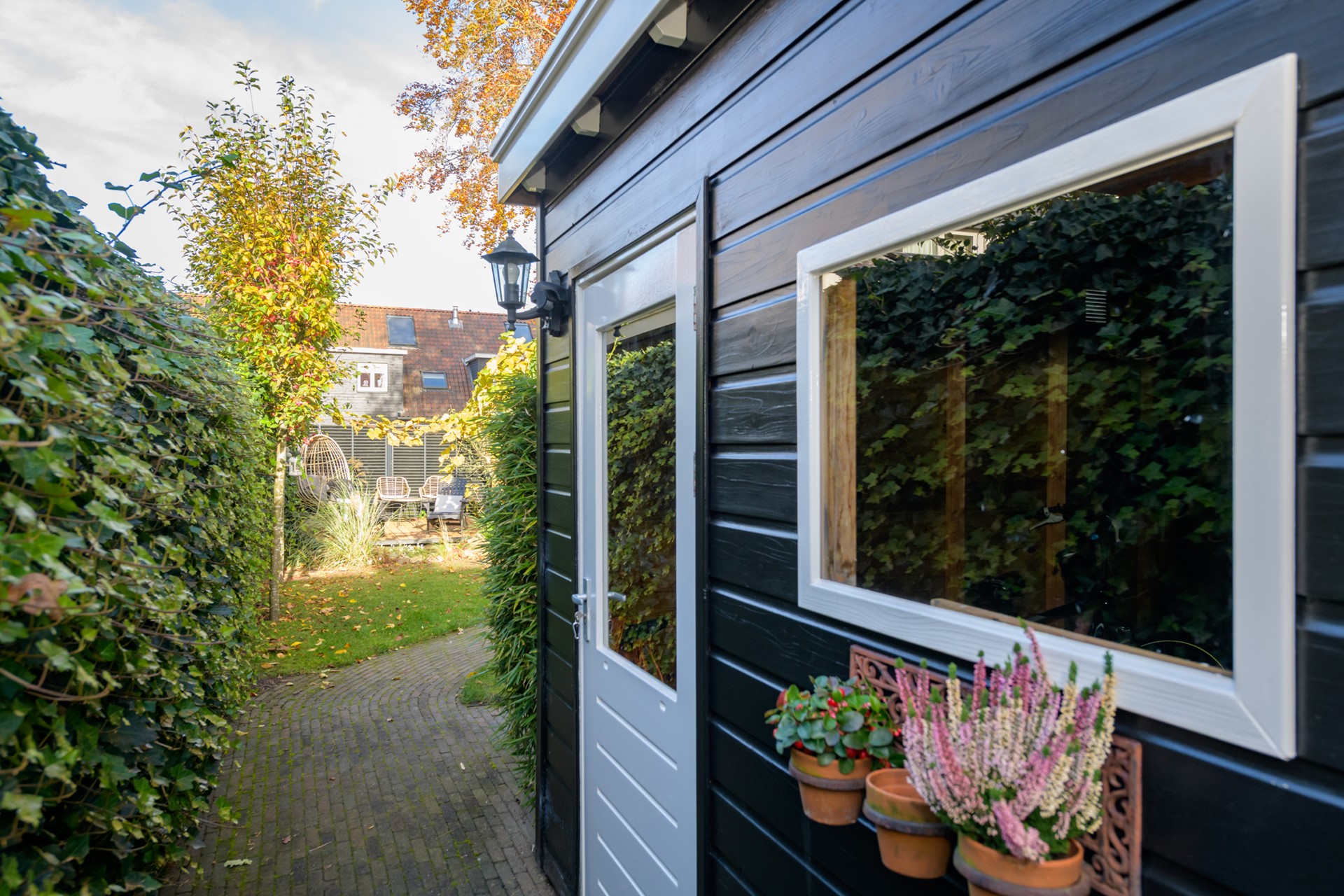 - In de tuin is een extra fietsenberging aanwezig en een overkapping t.b.v. haardhout en de containers;