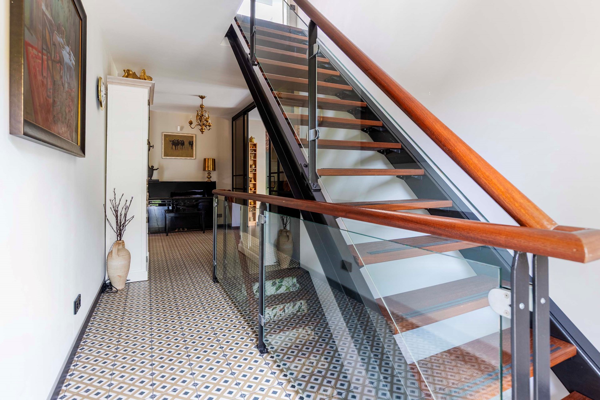 Op de eerste verdieping bevindt zich een ruime overloop, drie slaapkamers en een luxe badkamer. De royale ouderslaapkamer heeft een heerlijke sfeer door de grote raampartijen en directe toegang tot een loggia met uitzicht over de tuin. Eén van de andere slaapkamers is voorzien van een Frans balkon.
