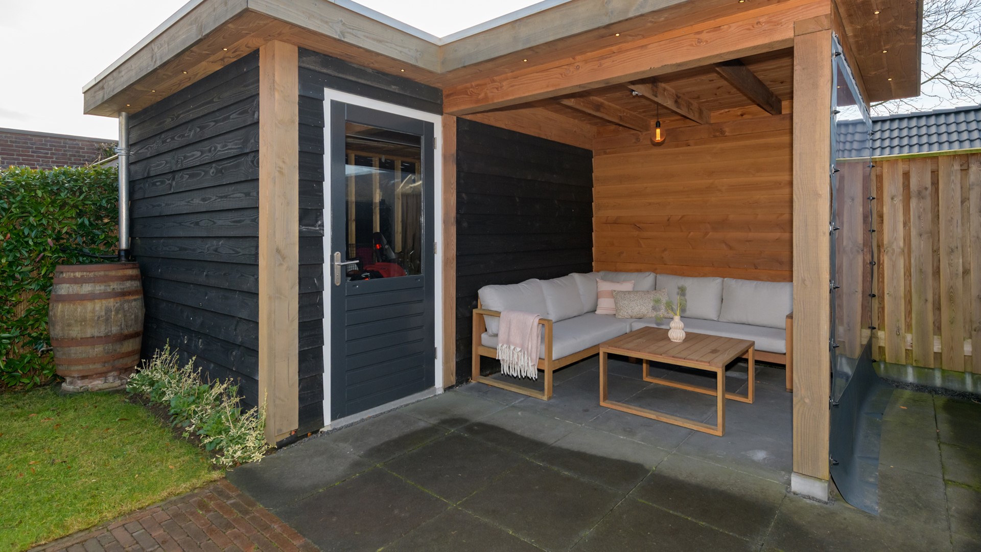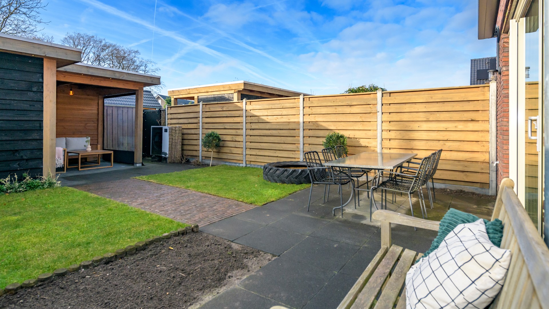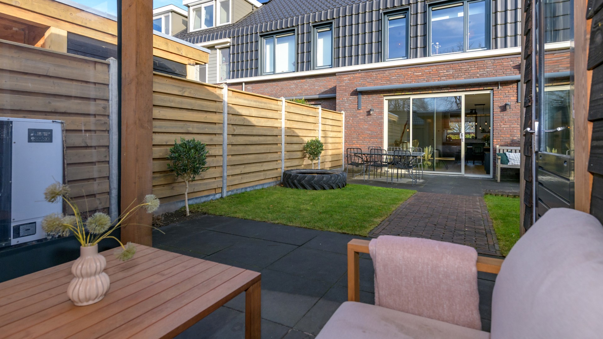 - De woning beschikt aan de achterzijde over een elektrisch bedienbaar zonnescherm met windsensor;