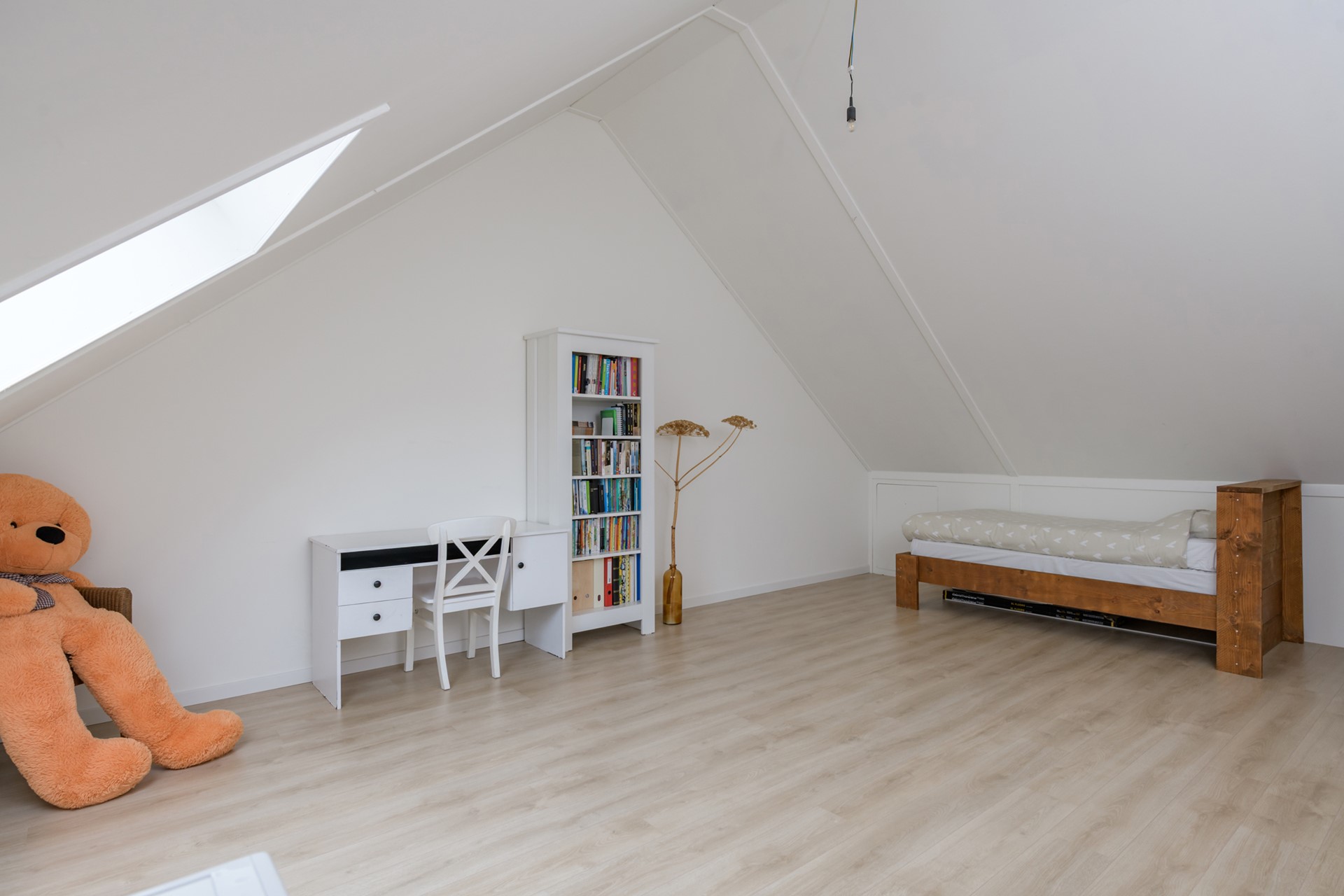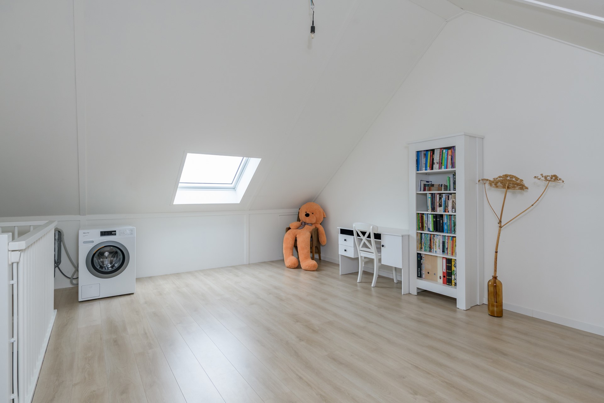 Open zolder met dakraam waar de mogelijkheid bestaat om een extra slaapkamer te creëren. Tevens bevindt zich op zolder de aansluiting voor de was- en droogapparatuur en veel bergruimte.