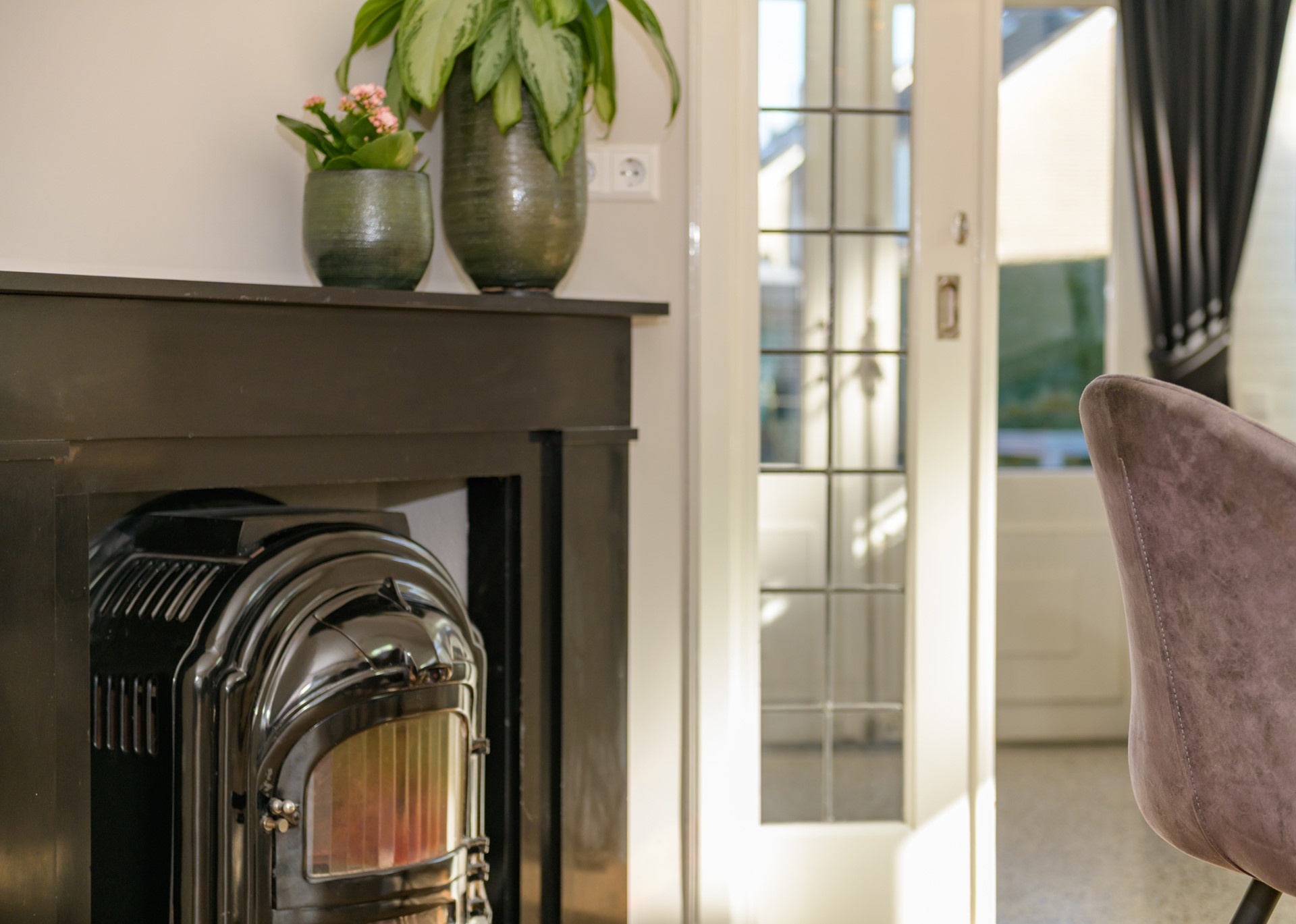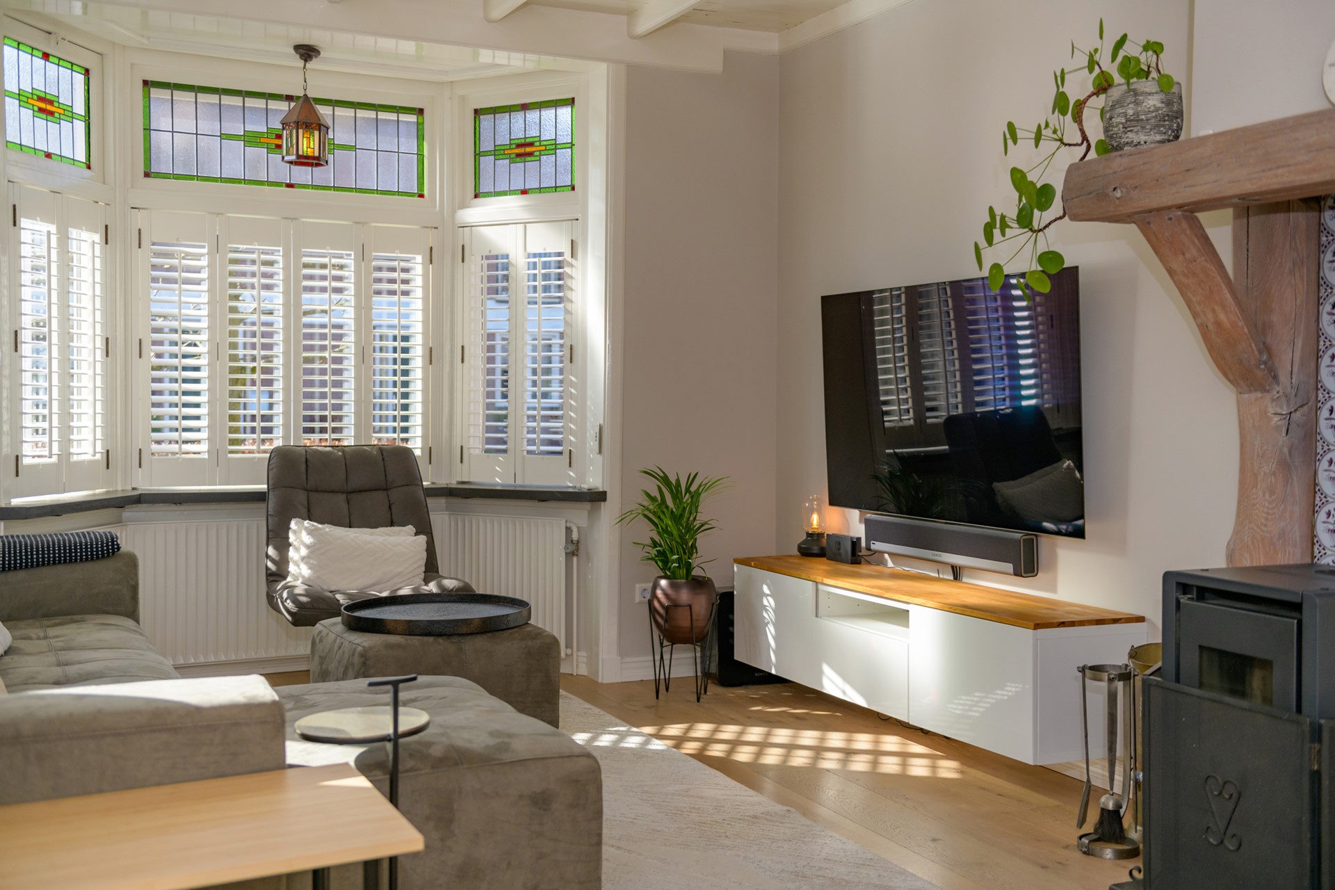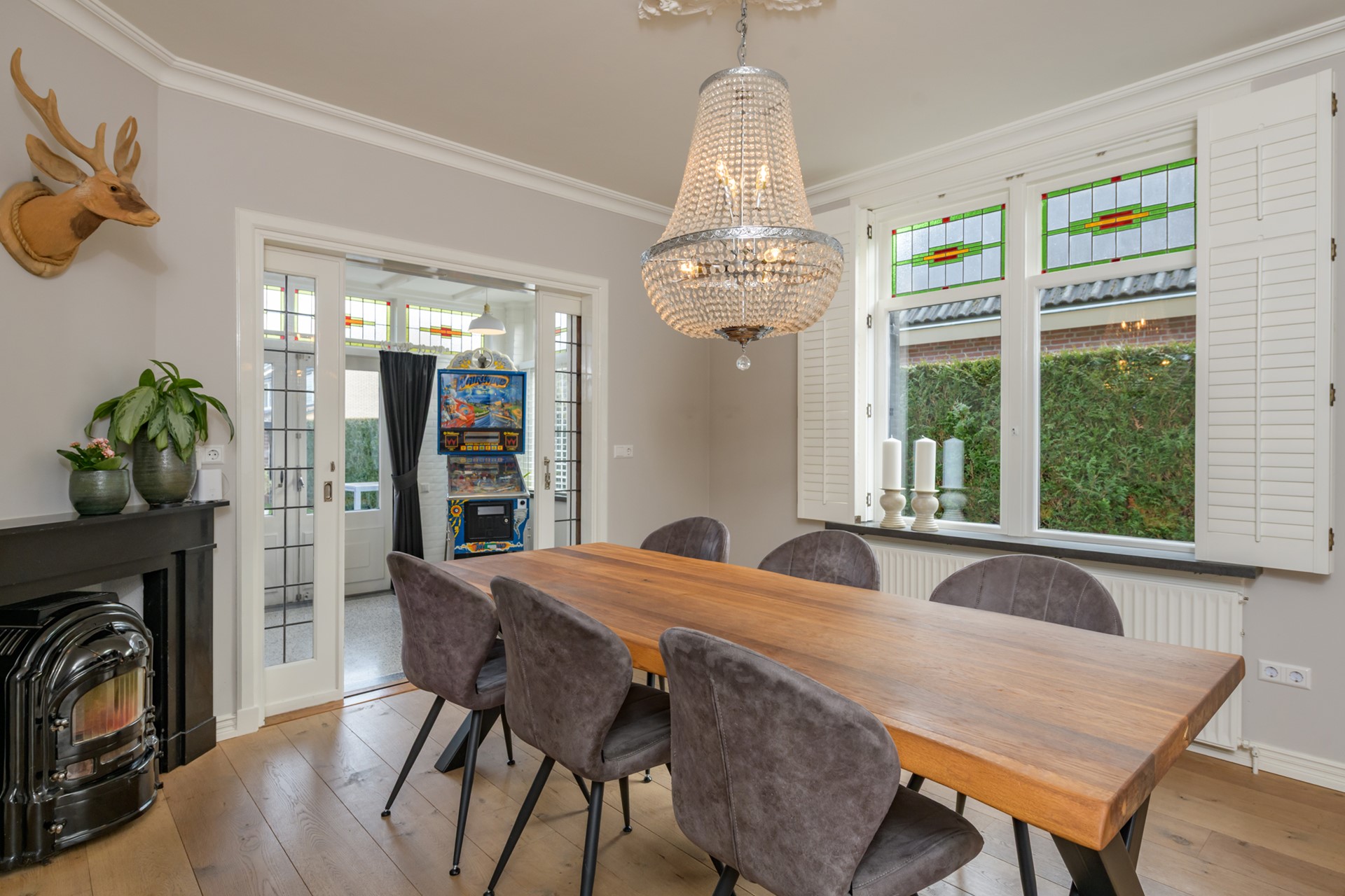 - Alle glas in lood ramen beschikken over voorzetramen en er is een nieuwe voordeur geplaatst;