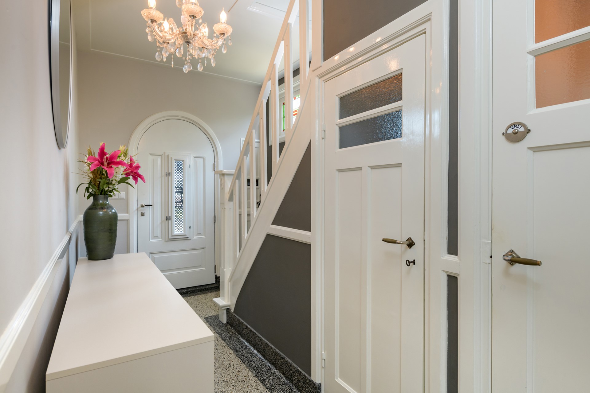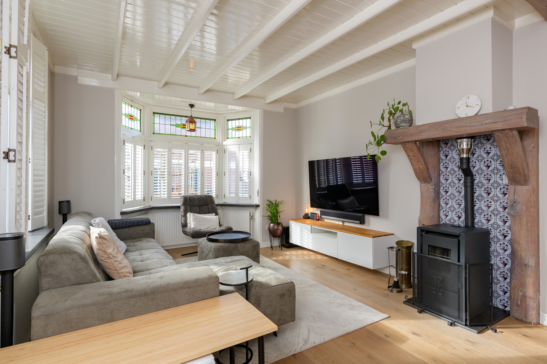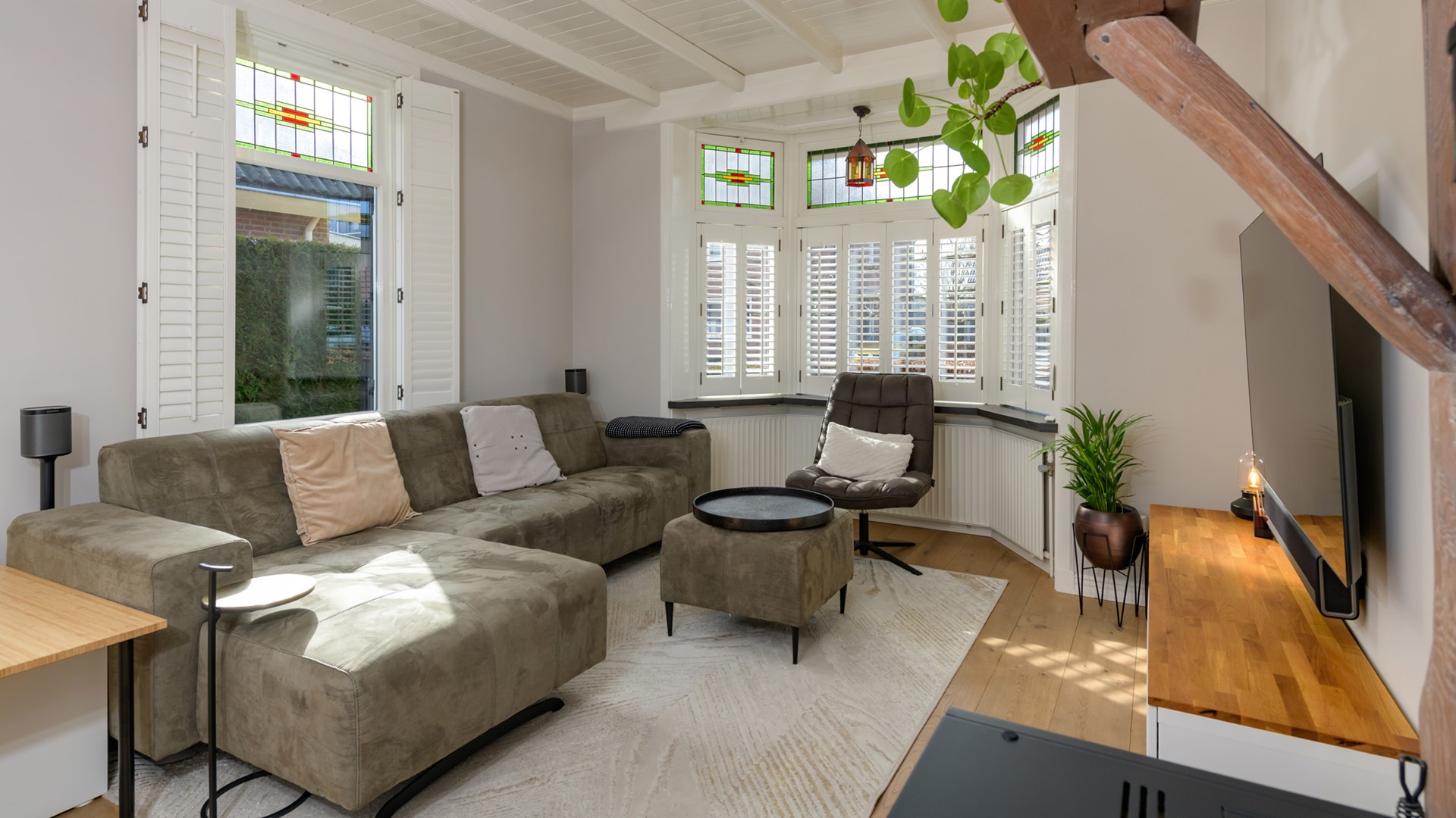 - Alle glas in lood ramen beschikken over voorzetramen en er is een nieuwe voordeur geplaatst;