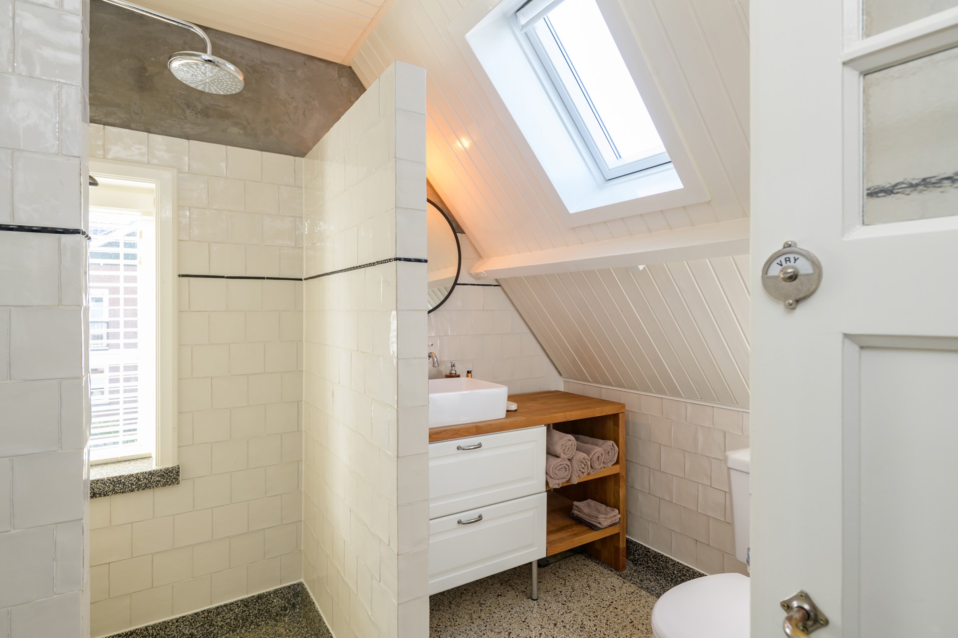 Middels een vlizotrap is de bevloerde bergzolder te bereiken met een nieuw dakraam.