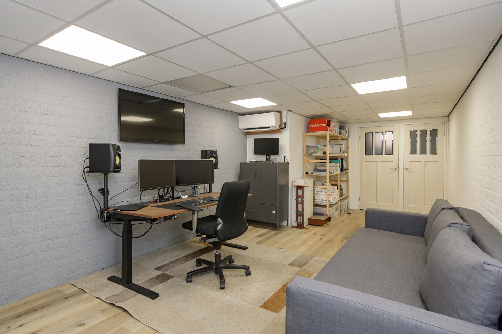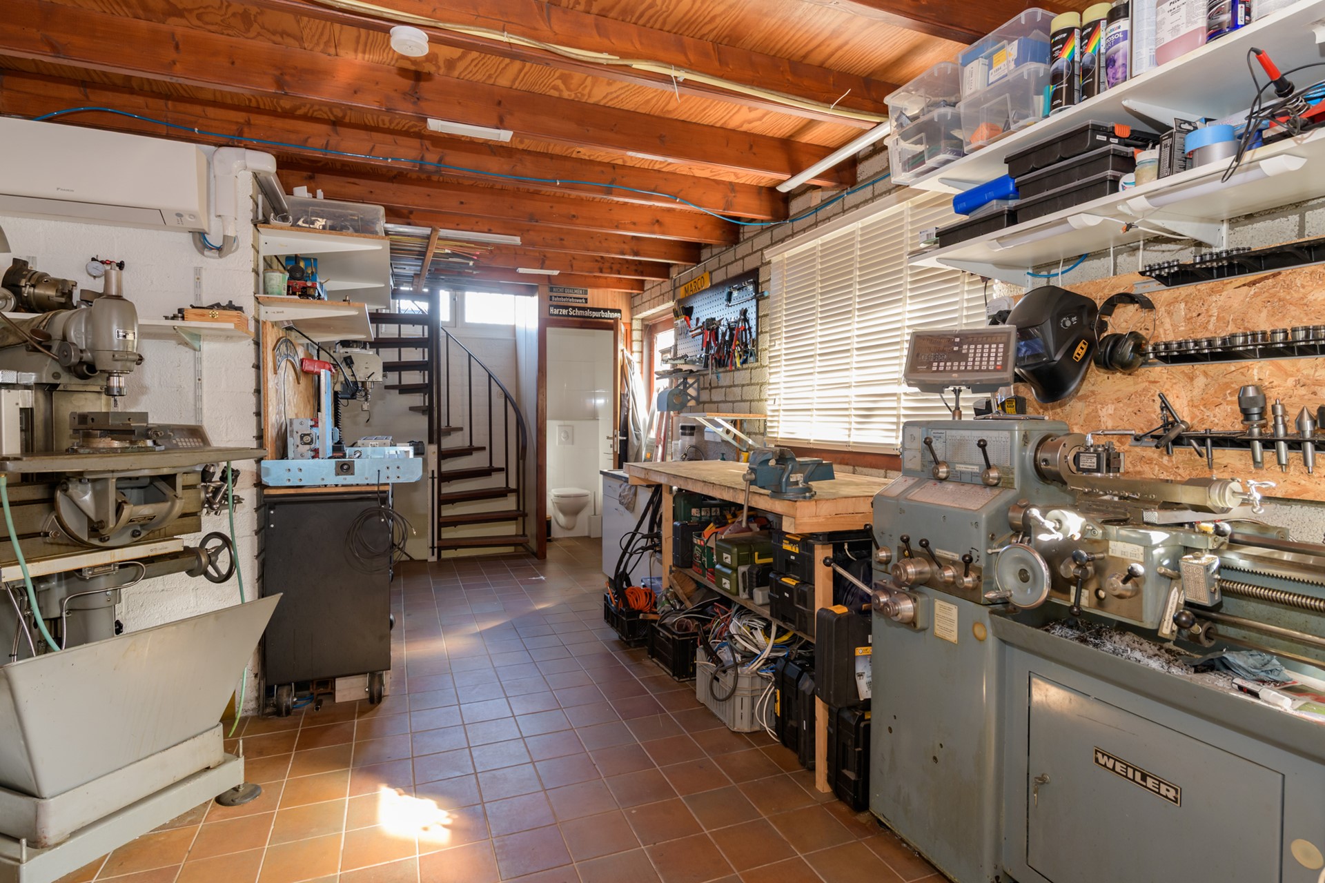 De garage is volledig in spouw gebouwd, beschikt over een nieuwe elektrische roldeur en over twee loopdeuren. Op de begane grond is tevens een toilet aanwezig. Middels een vaste trap is het souterrain te bereiken welke wordt verwarmd middels een airco. Een perfecte werkruimte! Op de zolder is veel ruimte voor het opbergen van spullen.